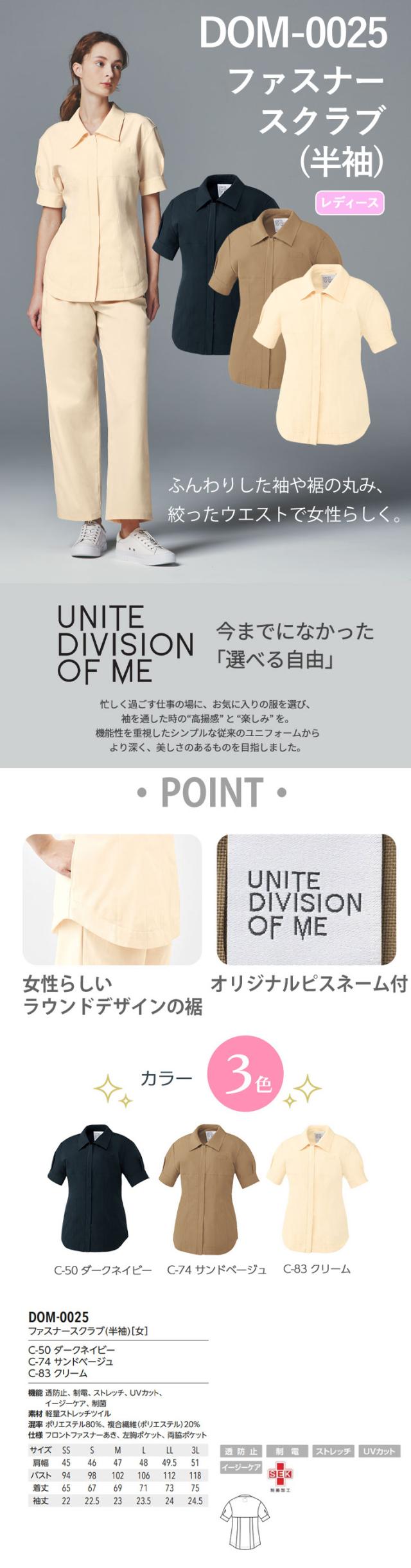 スクラブ 白衣 レディース 女性用 unite ユナイト チトセ ファスナースクラブ(半袖)[女] DOM-0025 医療 制服 ユニフォーム 医者 医師 看護師 ナース 病院 おしゃれ かわいい 可愛い