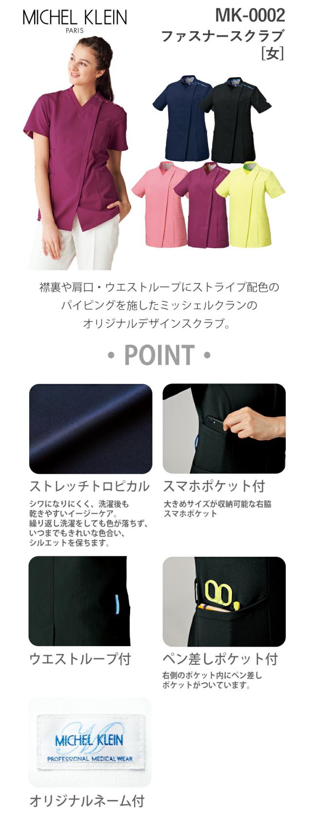 スクラブ 白衣 レディース 女性用 MICHEL KLEIN ミッシェルクラン ファスナースクラブ[女] MK-0002 医療 制服 ユニフォーム 医者 医師 看護師 ナース 病院 おしゃれ かわいい 可愛い