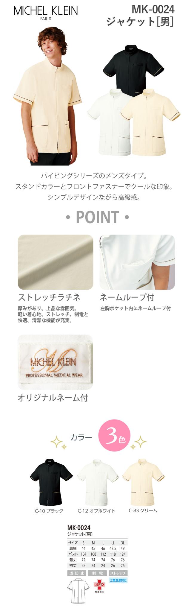 ケーシー 白衣 ジャケット メンズ 男性用 MICHEL KLEIN ミッシェルクラン ジャケット[男] MK-0024 医療 制服 ユニフォーム 医者 医師 看護師 ナース 病院 横掛 おしゃれ かっこいい 動きやすい