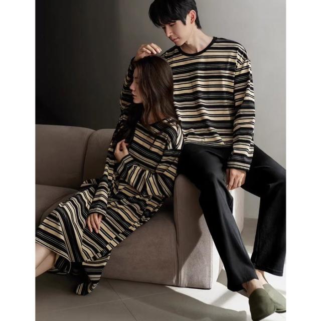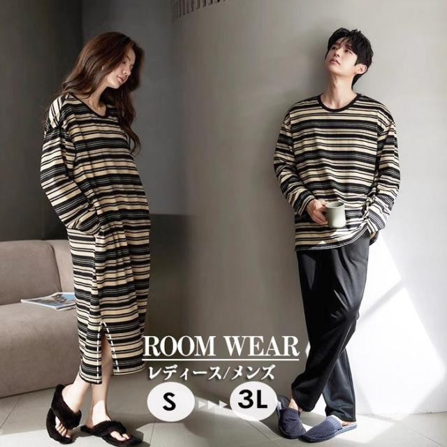 ペアパジャマ 長袖 長パンツ 春 秋 ルームウェア メンズ トップス+パンツ レディース ワンピース カップル 男性 女性 部屋着 S~2XL韓国風 寝間着 ギフト プレゼント 結婚祝い おしゃれ お揃いパジャマ ペア ゆったり 寝巻き シンプル dh313c0c0m6