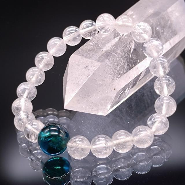 パワーストーン ヒマラヤ水晶 アンバーブルーグリーン琥珀 8mm 親玉12mm 高品質ブレスレット 金運 浄化 開運 健康 天然石 メンズ レディース