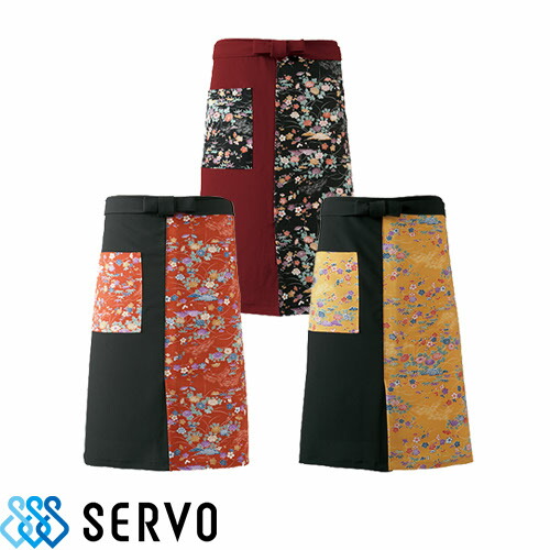 エプロン 和風 ショート丈 サーヴォ Servo 前掛 K3673、K3674、K3675 飲食店 制服 ユニフォーム 居酒屋 和食店 酒屋 蕎麦屋 業務用 おしゃれ かわいい かっこいい