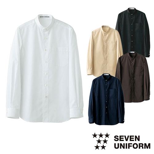 シャツ スタンドカラー 立ち襟 制服 ユニフォーム セブンユニフォーム 抗菌スタンドカラーシャツ 長袖[兼用] CH4456-0、CH4456-1、CH4456-6、CH4456-7、CH4456-9 飲食店 メンズ レディース レストラン カフェ 厨房
