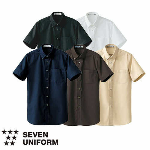 シャツ ワイシャツ セブンユニフォーム 抗菌ボタンダウンシャツ 半袖[兼用] CH4455-0、CH4455-1、CH4455-6、CH4455-7、CH4455-9 飲食店 制服 ユニフォーム メンズ レディース レストラン カフェ おしゃれ かわいい