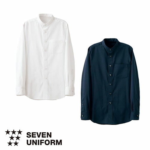 シャツ スタンドカラー 立ち襟 制服 ユニフォーム セブンユニフォーム スタンドカラーシャツ 長袖[兼用] CH4466-0、CH4466-1 飲食店 メンズ レディース レストラン カフェ 厨房 中華 おしゃれ かわいい かっこいい