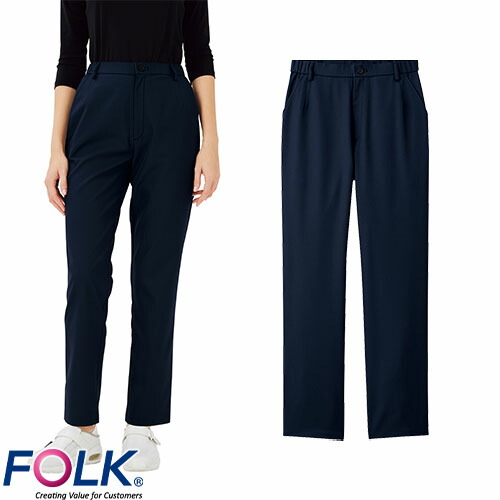スクラブ パンツ 白衣ズボン レディース 女性用 FOLK フォーク スリムテーパードパンツ(脇ゴム) 6016SC-17 医療 制服 ユニフォーム 医者 医師 看護師 ナース 病院 おしゃれ かわいい