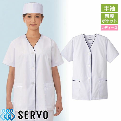 白衣 調理白衣 制服 ユニフォーム サーヴォ Servo 女性用衿無し(半袖) FA382 飲食店 厨房服 調理服 寿司屋 和食店 割烹 料亭 居酒屋 おしゃれ かっこいい プロ仕様
