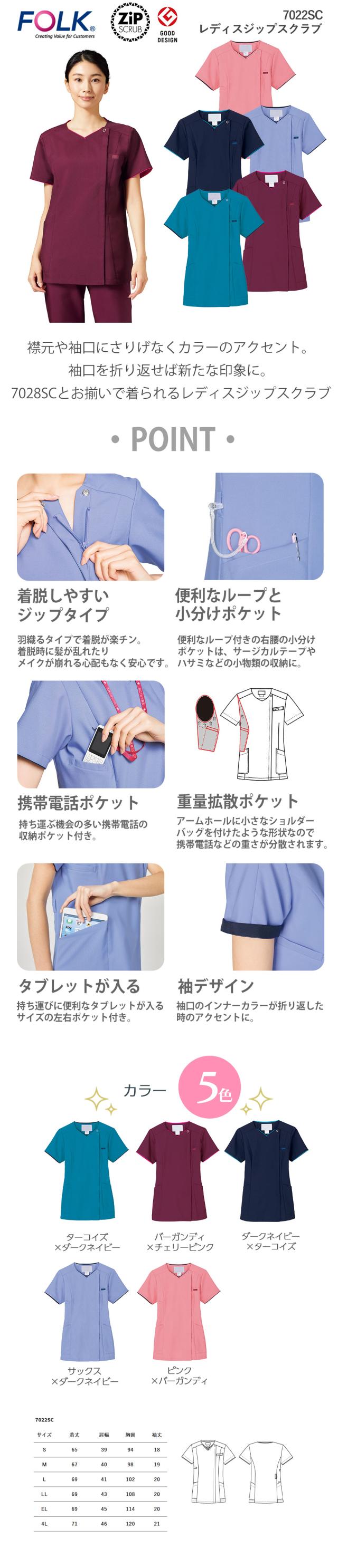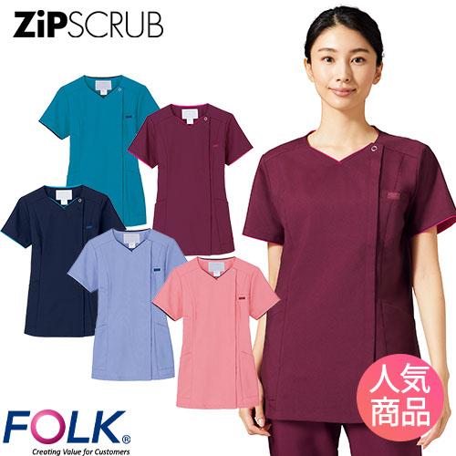 スクラブ 白衣 レディース 女性用 FOLK フォーク ZiPSCRUB レディスジップスクラブ 7022SC-2、7022SC-3、7022SC-11、7022SC-16、7022SC-17 医療 制服 ユニフォーム 医者 医師 看護師 ナース 病院 お