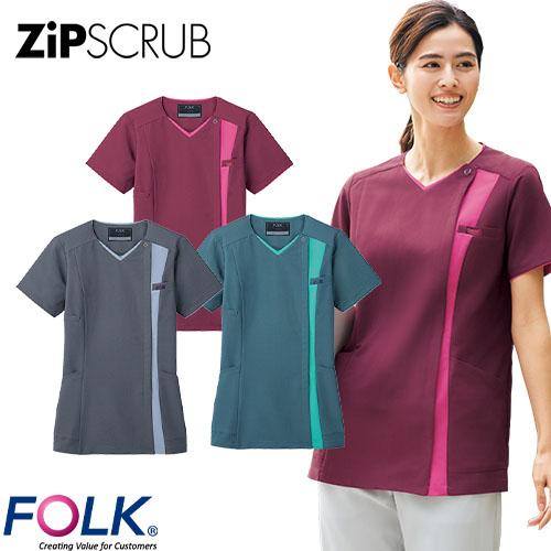 スクラブ 白衣 レディース 女性用 FOLK フォーク ZiPSCRUB レディスジップスクラブ 7023SCP-2、7023SCP-5、7023SCP-16 医療 制服 ユニフォーム 医者 医師 看護師 ナース 病院 おしゃれ かわいい 可愛い
