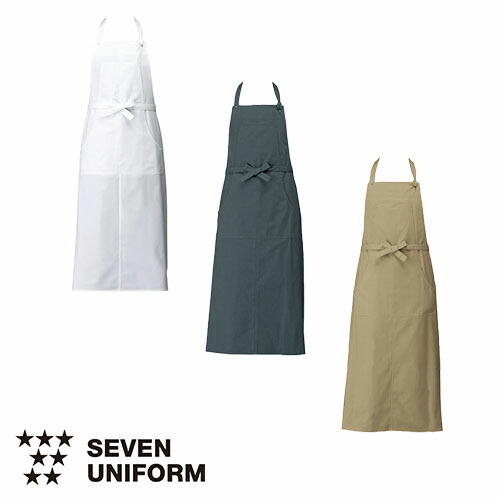 胸当てエプロン セブンユニフォーム 胸当エプロン CT2393-0、CT2393-1、CT2393-6 飲食店 制服 ユニフォーム レストラン カフェ おしゃれ かわいい 可愛い かっこいい