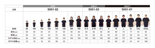 ◎商品説明:500101のガールズサイズモデル。細めの首リブやゆとりのある首もと、短めの袖丈・身丈といった女性専用のサイジングに、Style No.5001-01本