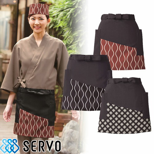 エプロン 和風 ショート丈 サーヴォ Servo 前掛 SAPU-1707 飲食店 制服 ユニフォーム 居酒屋 和食店 酒屋 蕎麦屋 業務用 おしゃれ かわいい かっこいい