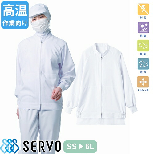食品衛生白衣 衛生衣 作業着 作業服 サーヴォ Servo 男女兼用長袖ジャンパー AQ-495 制服 ユニフォーム 食品工場 食品加工 メンズ レディース