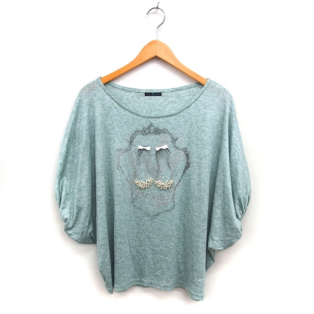 【中古】リアルキューブ REAL CUBE ドルマンスリーブ カットソー ウール混 ビーズ装飾 ボートネック 七分袖 グリーン