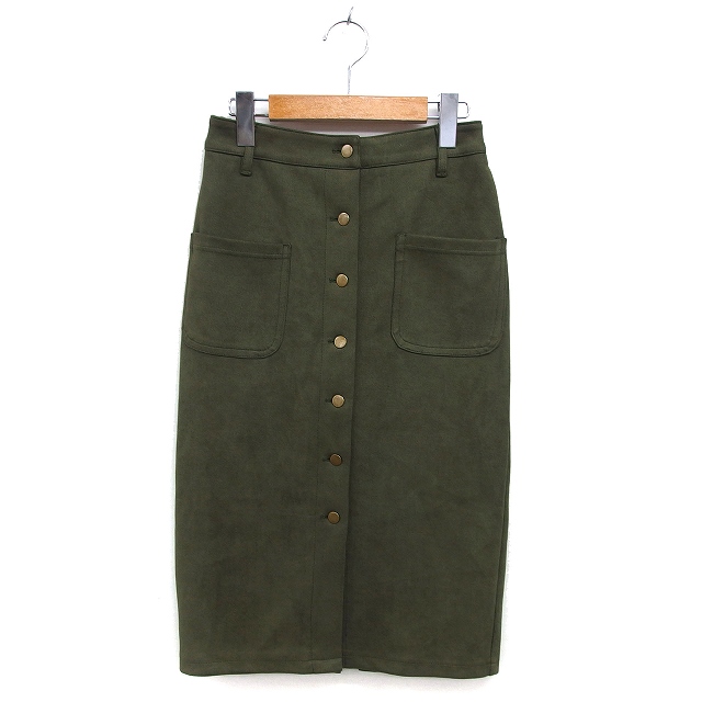 【中古】レイカズン Ray cassin フェイクスエード ナロー ロング スカート フロントボタン スリット ゆったり F