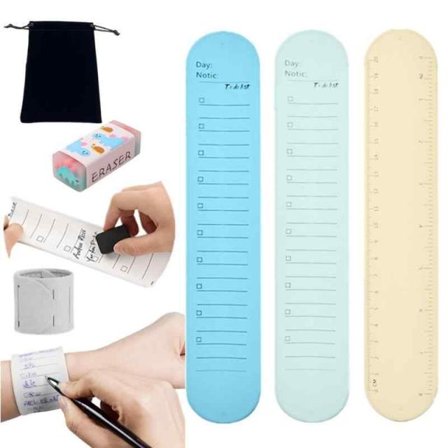 リストバンド メモ ウェアラブルメモ 手首メモ 腕に巻くメモ帳 3個セット シリコン製 書いて消せる 再利用可能 定規付き身につけるメモ やることリスト メモ帳 to do list 腕バンドメモ バンドタイプ 定規使用可能 防水機能 消しゴム付き (幅4