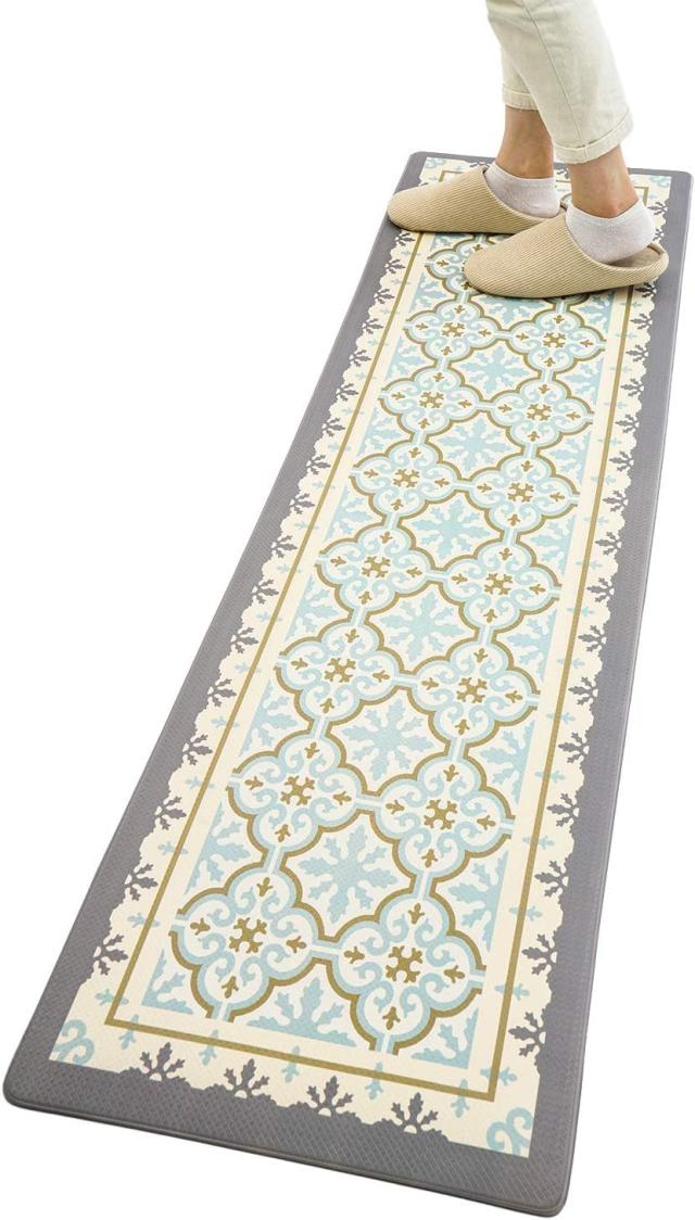 ◆商品名:Ashmore キッチンマット 拭ける台所マ ット PVC 撥水 おしゃれ 滑り止め 抗菌 防炎 厚さ8mm お手入れ簡単 約45cm*180cm スノーフレーク