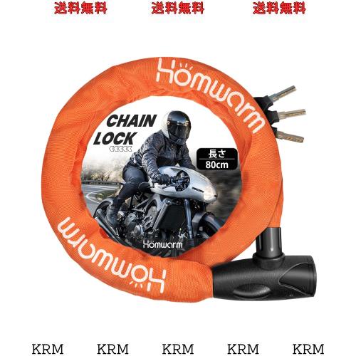Homwarm バイクロック チェーンロック 頑丈 盗難防止 鍵3本付き 極太 長さ800mm チェーンパイプ直径8mm 多用途 自転車 バイク ワイヤーロ