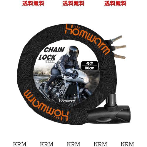 Homwarm バイクロック チェーンロック 頑丈 盗難防止 鍵3本付き 極太 長さ800mm チェーンパイプ直径8mm 多用途 自転車 バイク ワイヤーロ