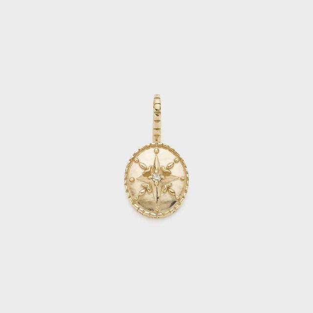 【Custom Charm】フレーム形のチャームとメダル形のチャームを自由に組み合わせてお気に入りのコーディネートを楽しめる、遊び心あふれるチャームシリーズ。春の空に明るく輝く木星の光をイメージして表面に立体的なレリーフを施したメダルチャーム。木星は古くから幸運をもたらす星と考えられていました。中心のダイヤモンドがきらりと輝きます。リバーシブルで楽しめるよう表面と裏面で雰囲気を変えて仕上げています。同じシリーズのとの組み合わせもおすすめ。フレームチャームの2本のバチカンの間にメダルチャームのバチカンをセットしてからチェーンを通してください。※天然石や天然素材を使用しているものは、サイズ・色味・風合いの違いや、若干の傷、内包物の有無などに個体差があります。予めご了承ください。※バチカンに両サイドから負荷がかかると変形して、重ねたいチャームのバチカンが入らなくなってしまう可能性がありますのでご注意ください。※写真のネックレスは別売りです。※裏面にアルファベット1文字刻印可(有料)。刻印サービスはノジェス・アガット店舗、または配送にて承っております。