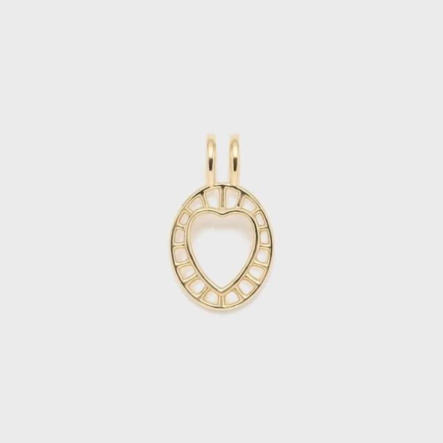 【Custom Charm】フレーム形のチャームとメダル形のチャームを自由に組み合わせてお気に入りのコーディネートを楽しめる、遊び心あふれるチャームシリーズ。暖かな日差しに包まれた時の幸福感をイメージして、ハートモチーフを地金の線ですっきりとモダンな印象に仕立てたフレームチャーム。ひとつで着けると軽やかで程よい抜け感が生まれます。同じシリーズのとの組み合わせもおすすめ。フレームチャームの2本のバチカンの間にメダルチャームのバチカンをセットしてからチェーンを通してください。※バチカンに両サイドから負荷がかかると変形して、重ねたいチャームのバチカンが入らなくなってしまう可能性がありますのでご注意ください。※写真のネックレスは別売りです。