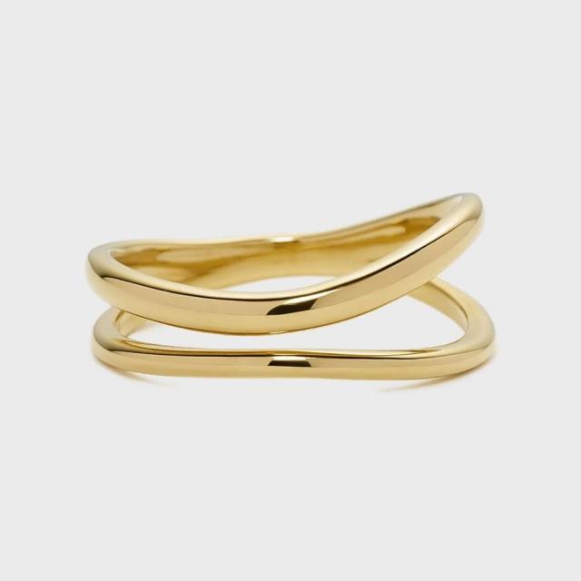 太さの異なる2本のラインが手元に抜け感を与えてくれるリング。どんなファッションにも合わせやすく、程よい存在感でコーディネートのアクセントとして活躍します。※サイズ直し不可。※デザイン上着用により隙間が狭くなる場合がありますので、着用の際に強い力がかからないようにご注意ください。