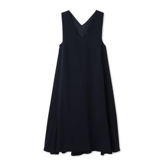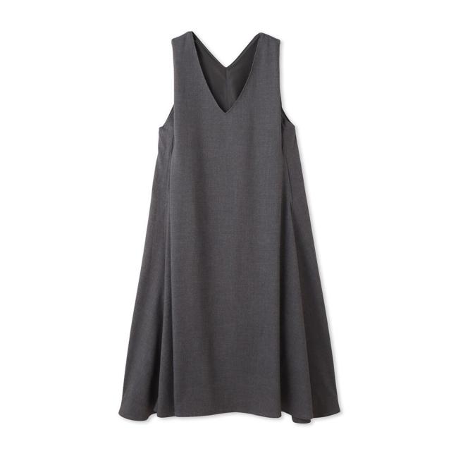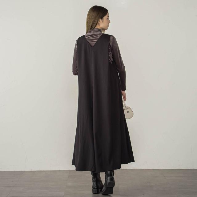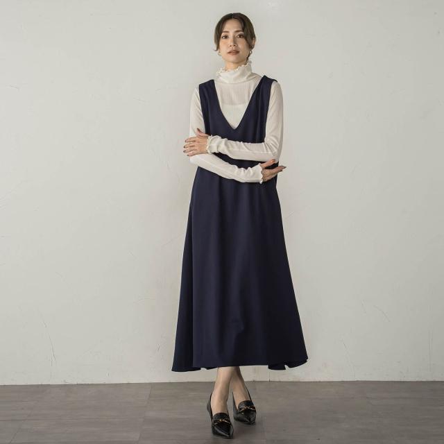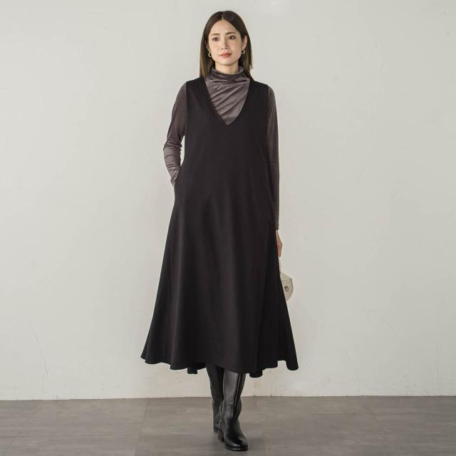 梳毛調合繊ディープVネックフレアワンピース≪洗濯機で洗える≫