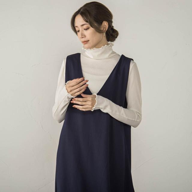 冬はハイネックニットをインして、春にはブラウスをインしてロングシーズン楽しめます。