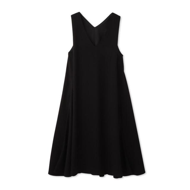 甘くなりがちなフレアシルエットもディープVネックでオトナ顔に。