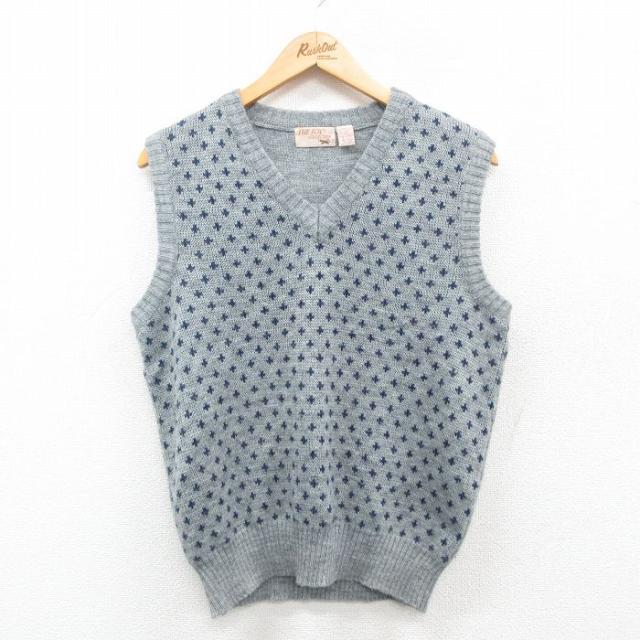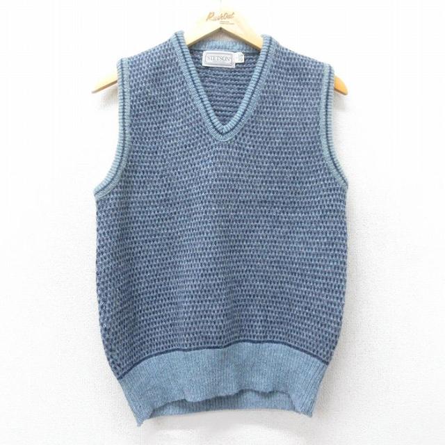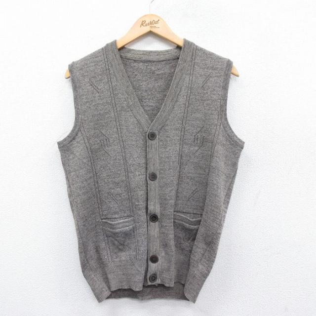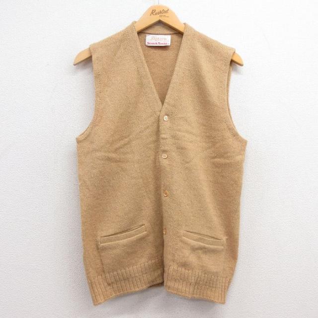 古着 ニット ベスト メンズ ベージュ系 カーキ Sサイズ 中古 トップス 中古 古着