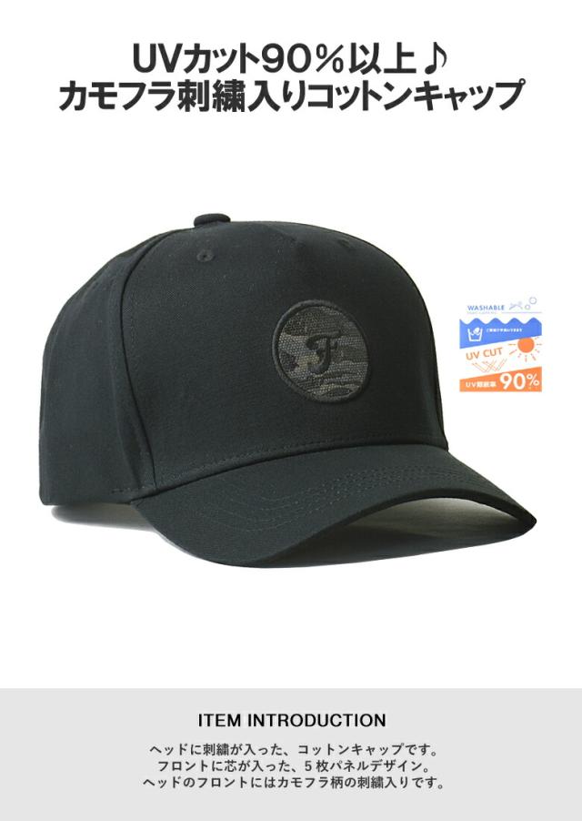 キャップ メンズ コットンキャップ カモフラ刺繍 UVカット ウォッシャブル コットン 5枚パネル アジャスター 帽子 レジャー お出かけ 57cm〜59cm対応【Z9F】