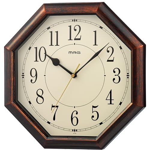 MAG(マグ) 掛け時計 電波時計 八角形 アナログ ネオオクターゴ 静音 連続秒針 木目調 ブラウン W-739BR-Z