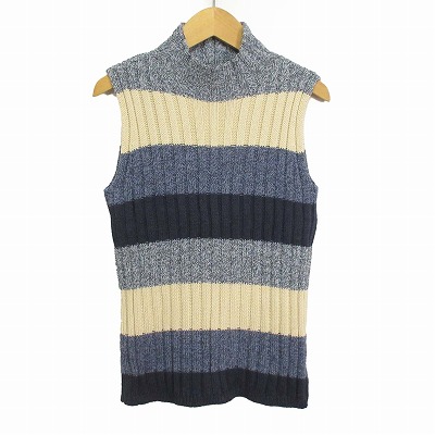 【中古】エディーバウアー EDDIE BAUER ニット ノースリーブ ハイネック ボーダー コットン XS 紺 ベージュ レディース