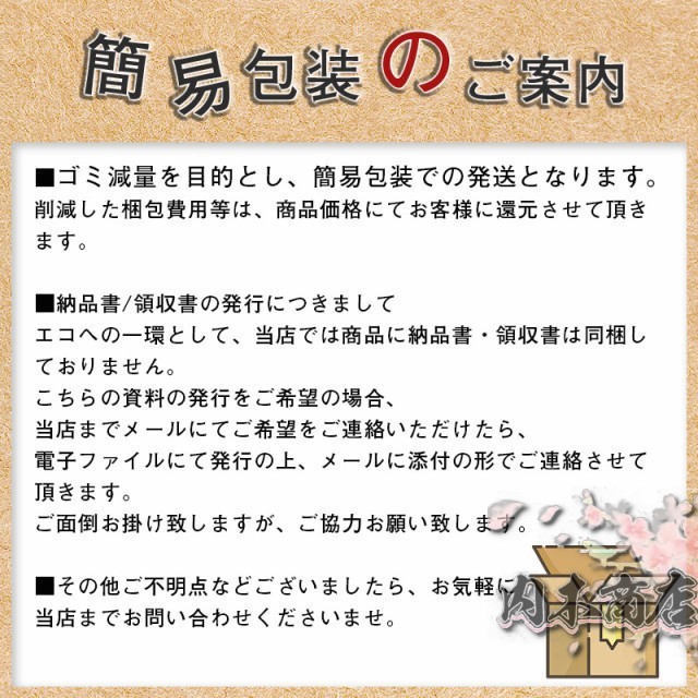 なお、発送後にお客様のご希望と異なる場合でも、返品・交換等の対象にはなりませんこと、何卒ご理解賜りますようお願い申し上げます。