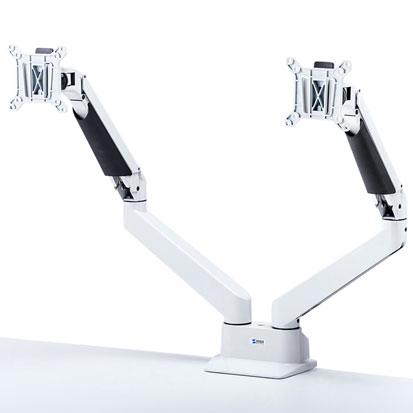 ◆クランプ式、グロメット式の取り付け方法が選べる、左右2面タイプのモニターアームです。