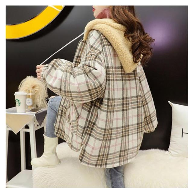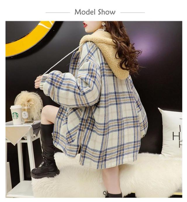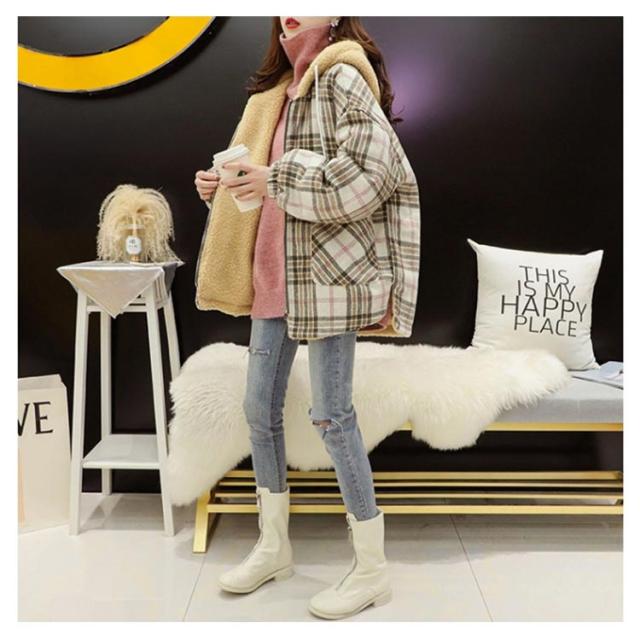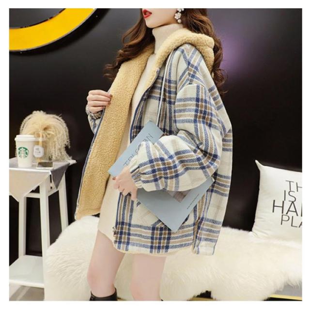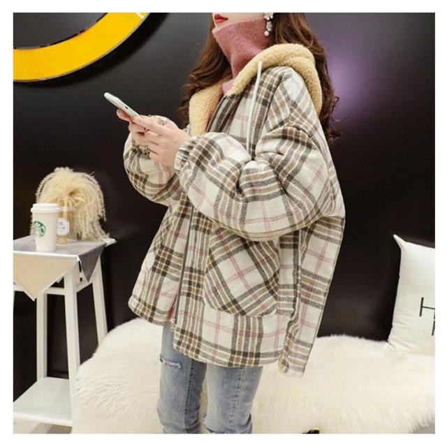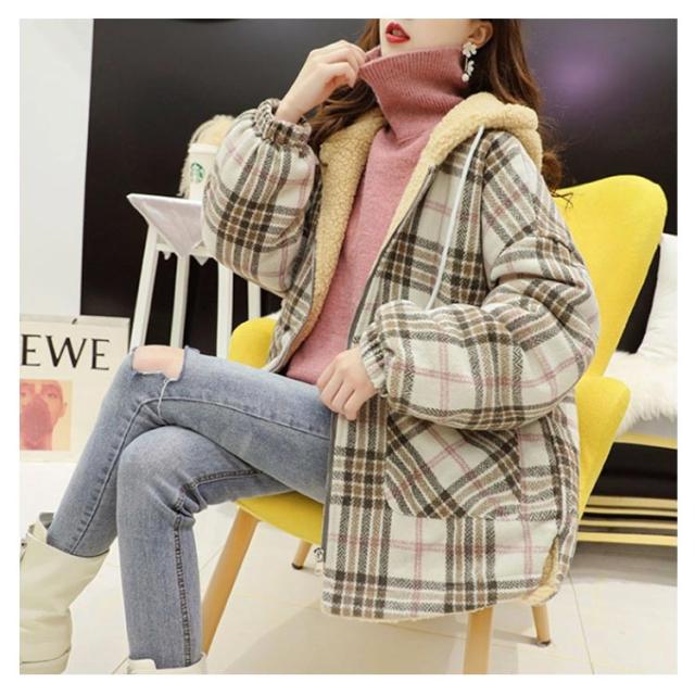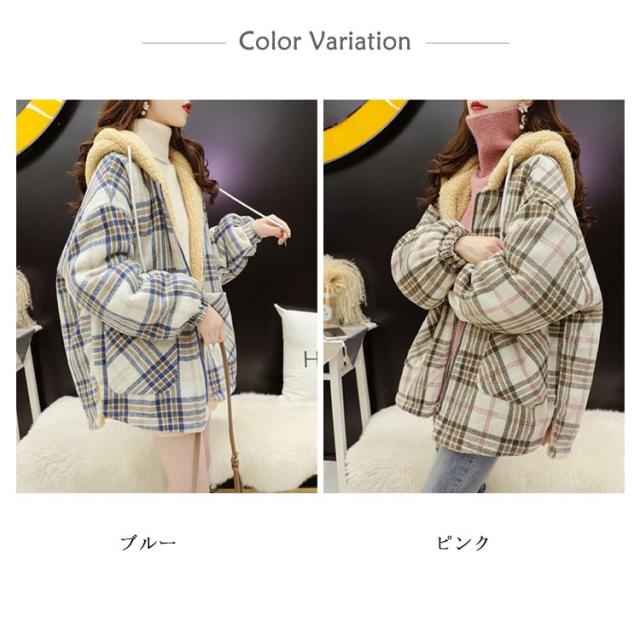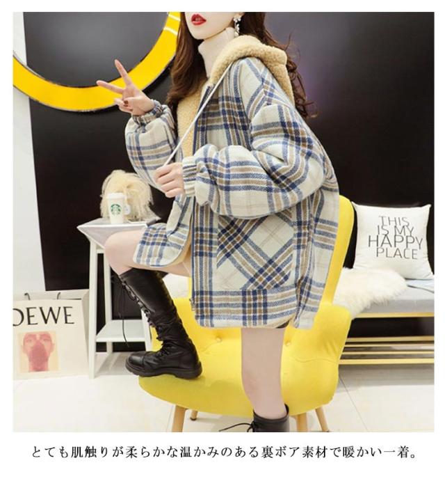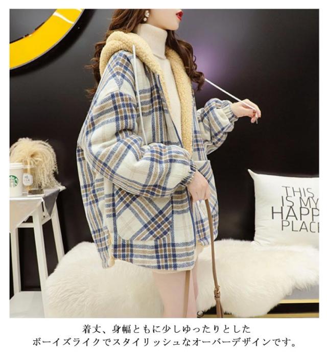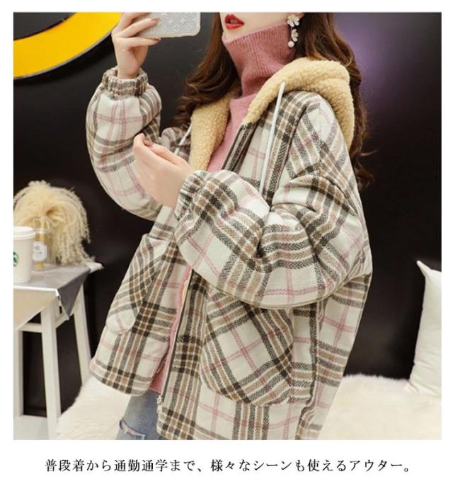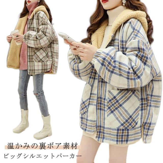 パーカー レディース ジャケット フード付き ビッグシルエット 裏ボア 裏ボア コート チェック柄 ボアコート ミドル丈 アウター 厚手 暖かい 秋冬 冬服 ゆったり かわいい