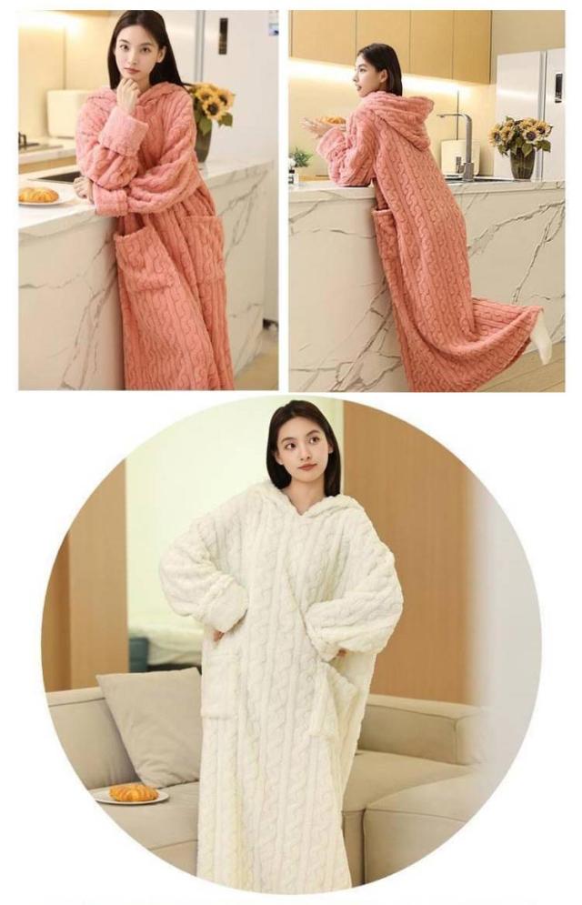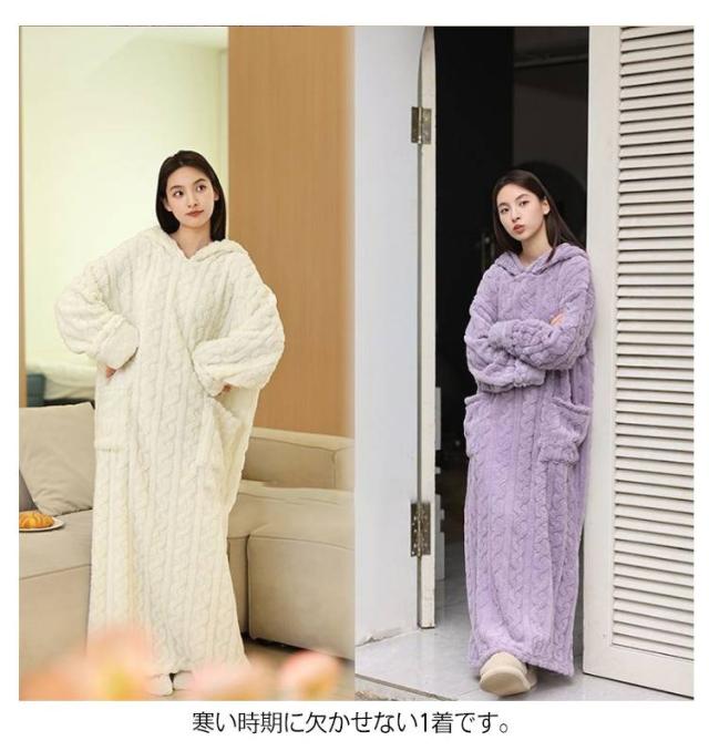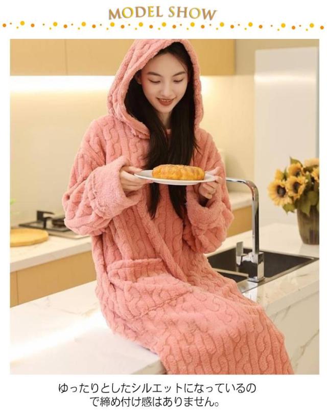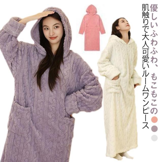 ワンピース ルームウェア ナイトウェア 長袖 フード付き パジャマ ルームウェア ポケット付き フリース 部屋着 パジャマ 寝間着 寝巻き ルームワンピース 着る毛布 あったか 暖かい 産前 産後 春 秋