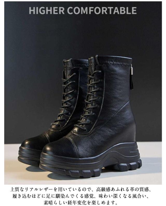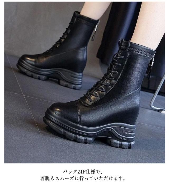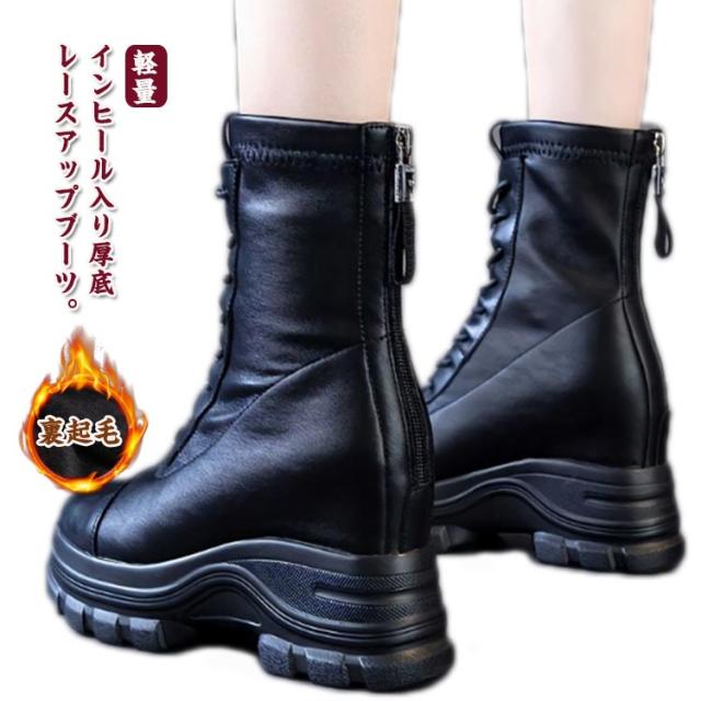 裏起毛 ショートブーツ レースアップブーツ ブーツ ウェッジヒール 撥水 厚底 9cmヒール 本革 レディース 編み上げ バックジップ 裏ボア 紐靴 防寒 インヒール 滑らない ボアブーツ おしゃれ きれいめ あったか 軽量 身長アップ 歩きやすい 厚底ブーツ