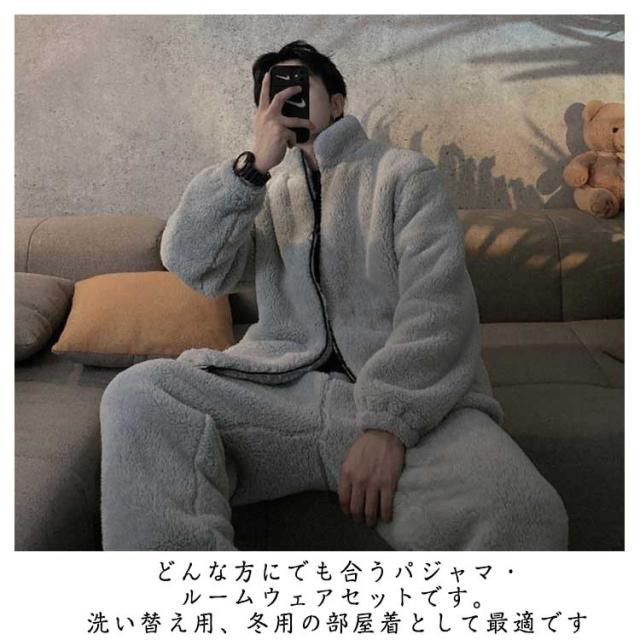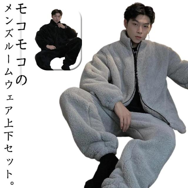 ルームウェア ホームウェア 暖かい メンズ もこもこ 上下セット 肌にやさしい 肉厚 厚手 ボア 冬用 部屋着 セットアップ パジャマ 長袖 ルームウェア ふわふわ ジップ 前開き ゆったり 体型カバー 秋 冬 新生活 柔らかい ふんわり ルームウェア かっこいい