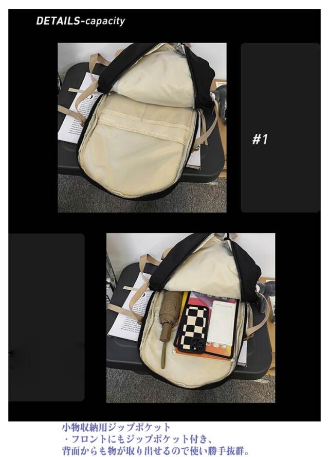 | 整理がしやすい機能的なリュックです。 ★たっぷり入り、ポケット機能も充実 ・大きな間口でA4サイズも出し入れも楽々♪ ・便利なポケットが多数ついていて、細々した小物から大きなものまできちんと整頓して収納できます! ? ★丈夫で頑丈な生地を採用 ・軽量ながらも耐久性に優れたナイロン生地を使用。 ・撥水性の高いナイロン生地で、軽い雨に濡れてサッと拭くだけでOK! ? ★様々なシーンで活躍 ・通学、通勤時だけではなく、旅行やアウトドア、スポーツシーンなど様々な場面でお使いいただけます。 ? ★両側にサイドポケット付き ・ペットボトルや水筒・タンブラーの収納・出し入れも楽々。 ? ★小物収納用ジップポケット ・フロントにもジップポケット付き、背面からも物が取り出せるので使い勝手抜群。 | |
