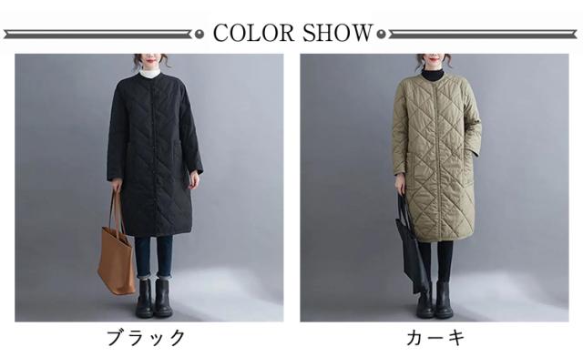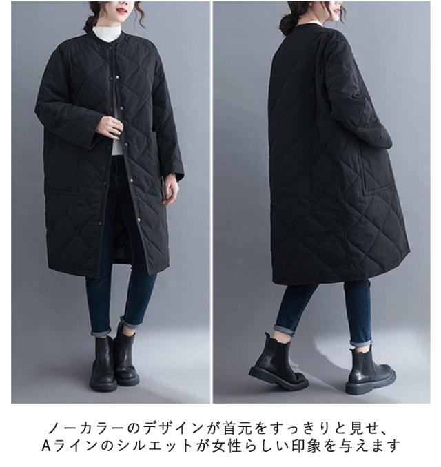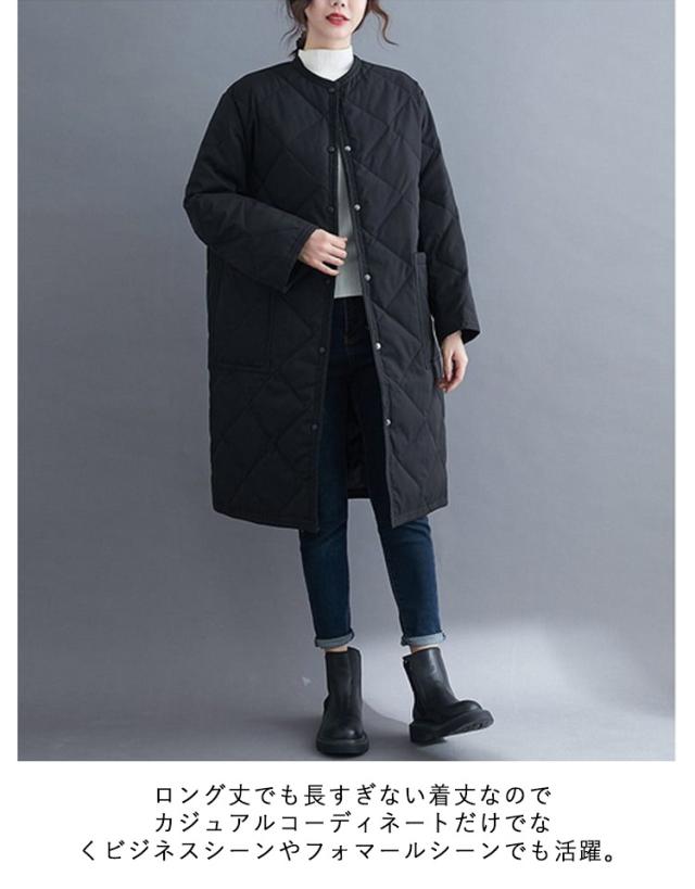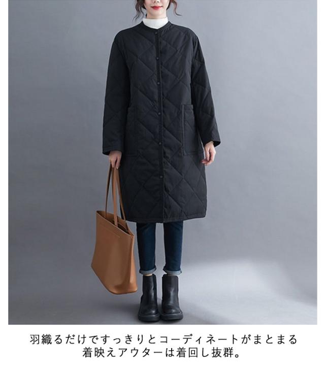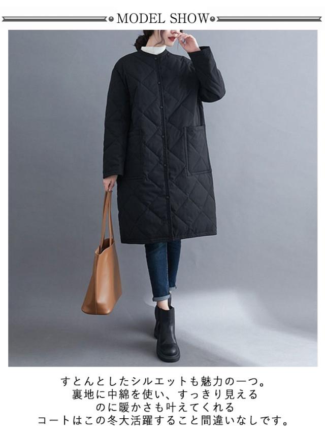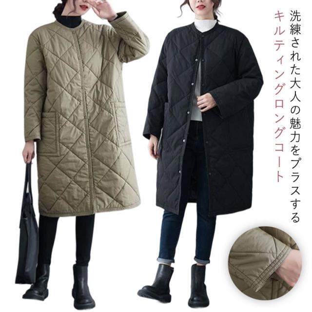 ノーカラー コート 中綿 キルティングコート アウター 秋冬 キルティングジャケット ジャケット オーバーサイズ ロング ビッグシルエット コート 上着 コート 羽織り 冬 秋 ノーカラー アウター 大きいサイズ 無地 ゆったり シンプル 防寒 あったか カジュアル