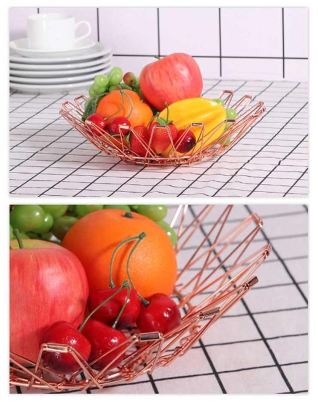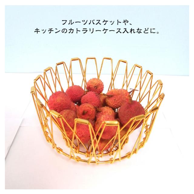 ワイヤーバスケット フルーツバスケット 北欧 果物かご フルーツボール 変形 折りたたみ おしゃれ フルーツボウル 丸型 収納バスケット ワイヤーカゴ ワイヤーバスケット お菓子入れ フルーツ皿 黒 金 銀 鍋敷き スチール