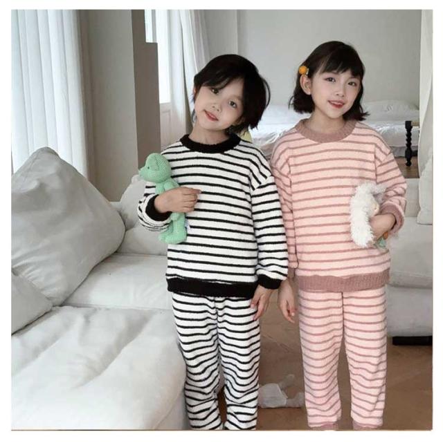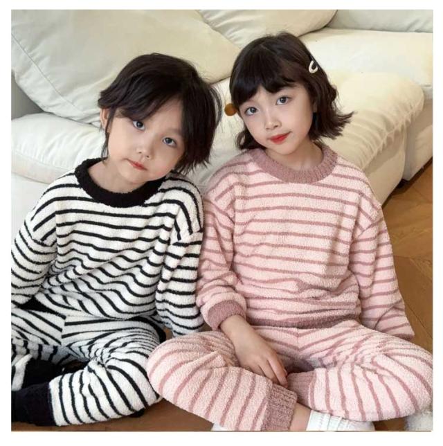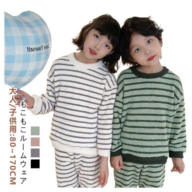 冬 親子ペア もこもこ 親子 ペアルック ルームウェア 親子お揃い ペアパジャマ 親子ペア 上下セット 秋冬 部屋着 あったか おしゃれ 防寒 リンクコーデ 親子コーデ 子供服 セットアップ ふわふわ 家族揃い 長袖 ボーダー柄 韓国風 ファッション 冬服 男の子 女の子