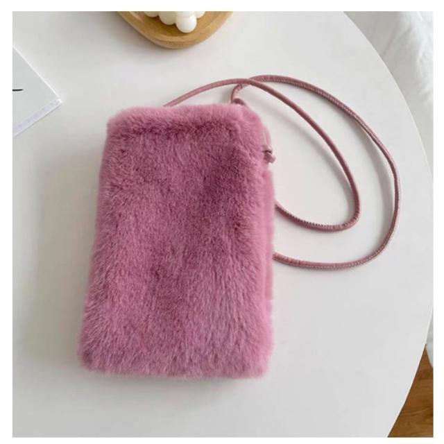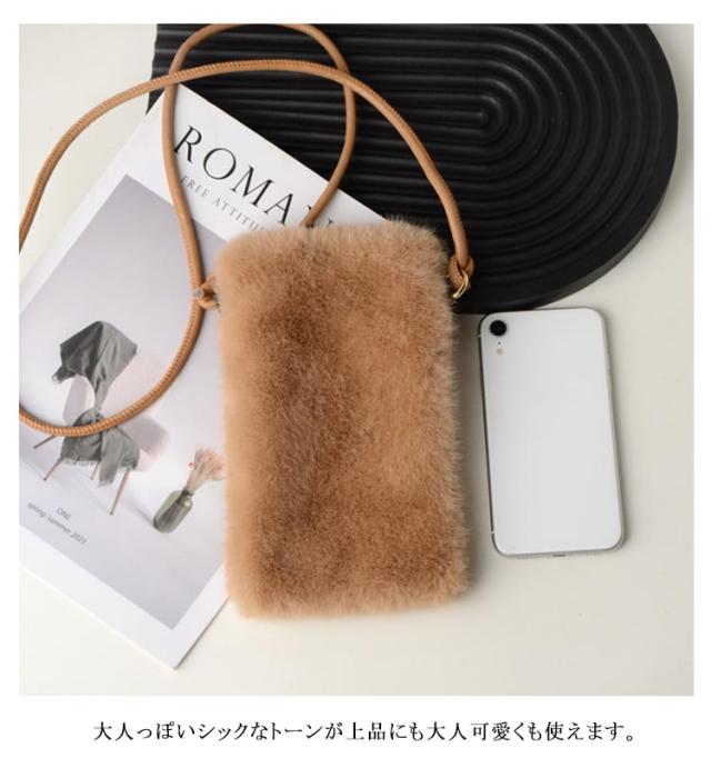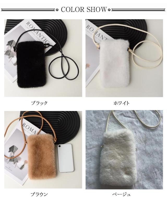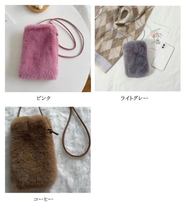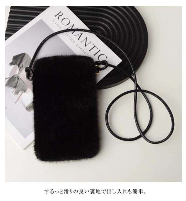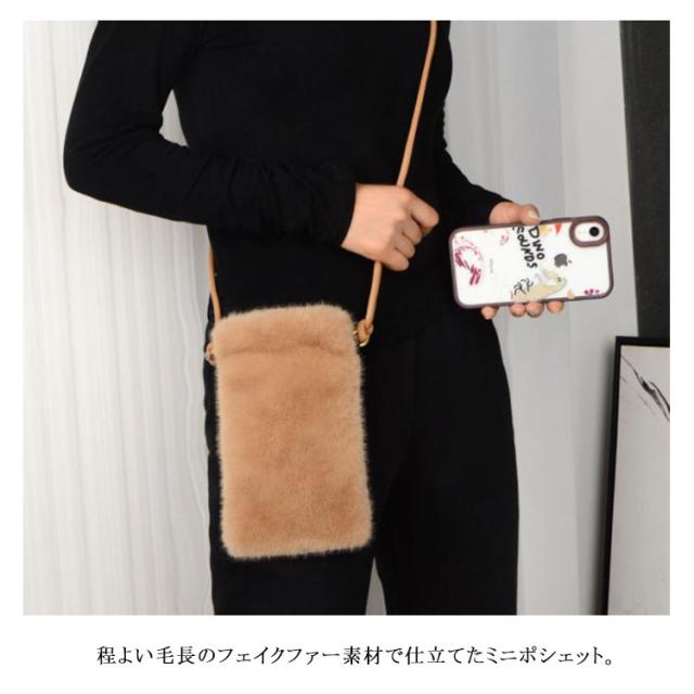 レディース ポシェット 斜めがけ 鞄 バッグ ミニバッグ フェイクファー カバン フェイクファー ファー 冬 ポシェット ミニポシェット 誕生日プレゼント 誕生日 プレゼント 韓国 秋 冬 軟らか 無地 ブラック 黒