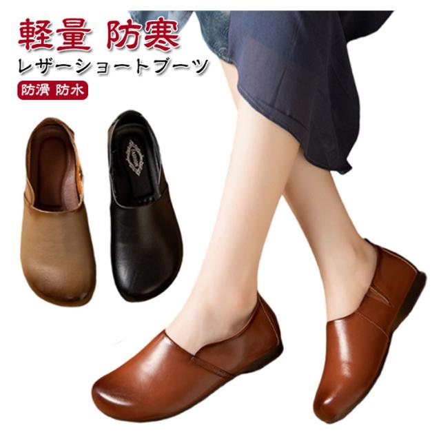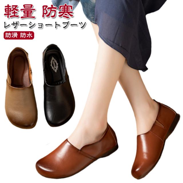 ブーツ 歩きやすい コンフォート レザー 本革 ローヒール ペコスブーツ ワークブーツ ミドル丈 ショート フラット 軽量 歩きやすい 疲れにくい ジッパー ブーツ 靴 軽量