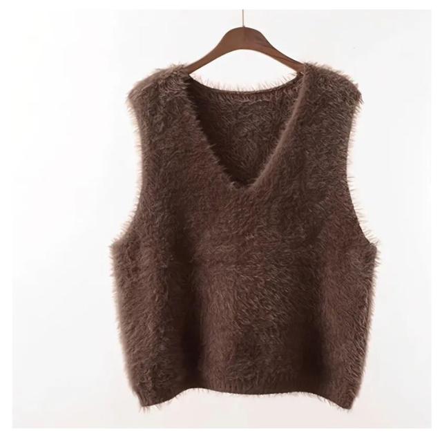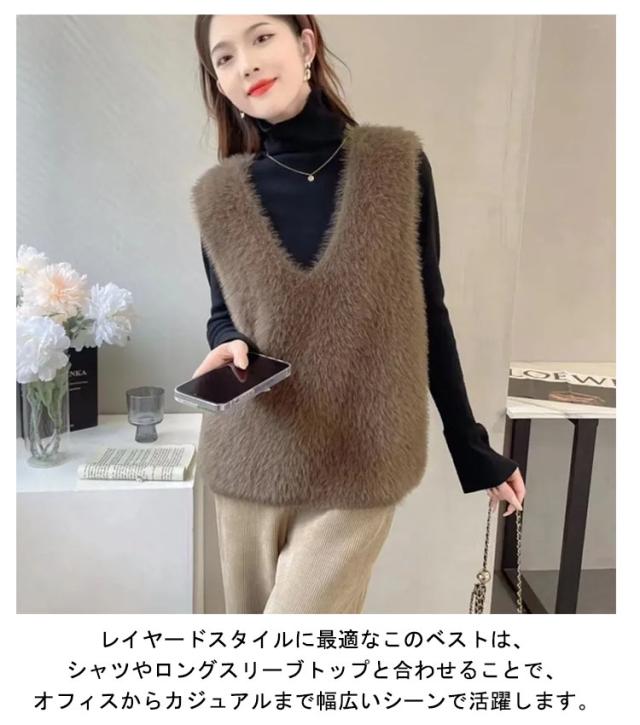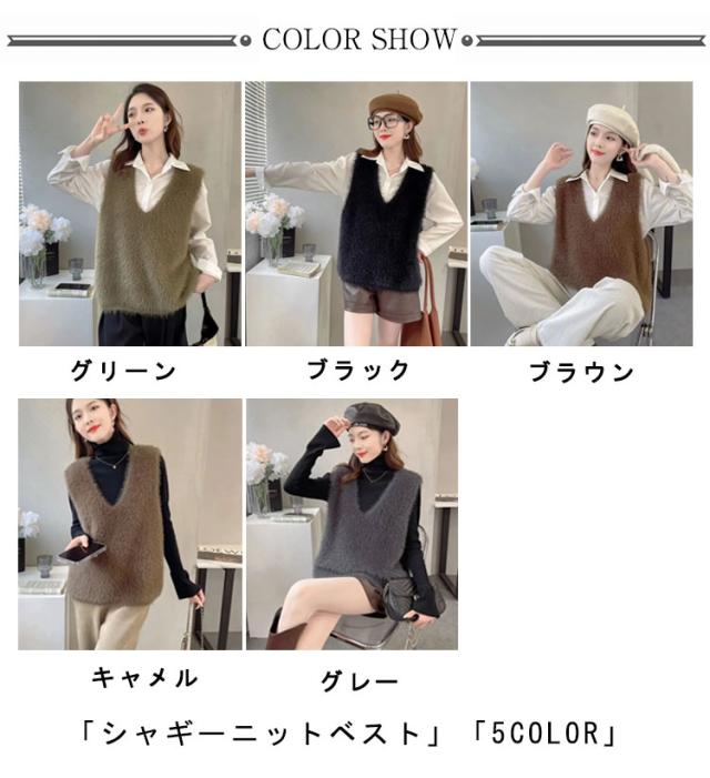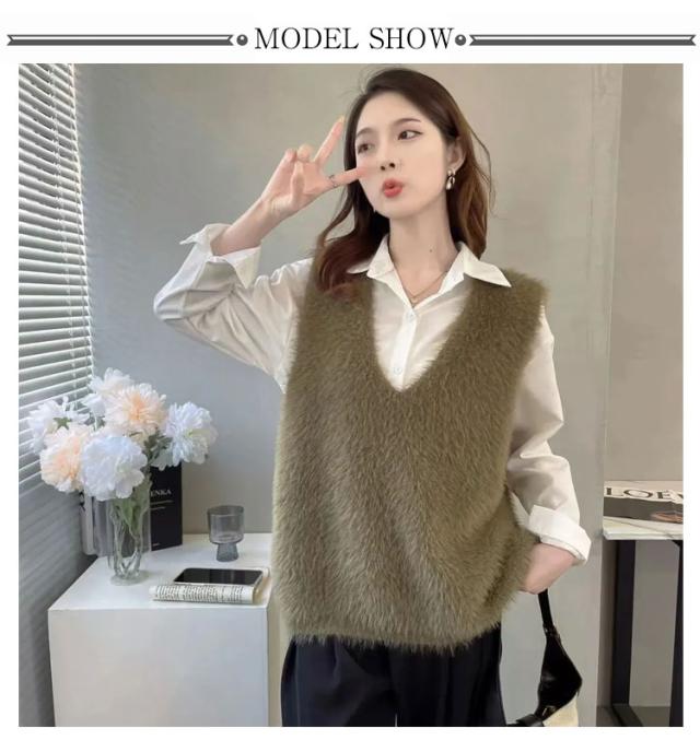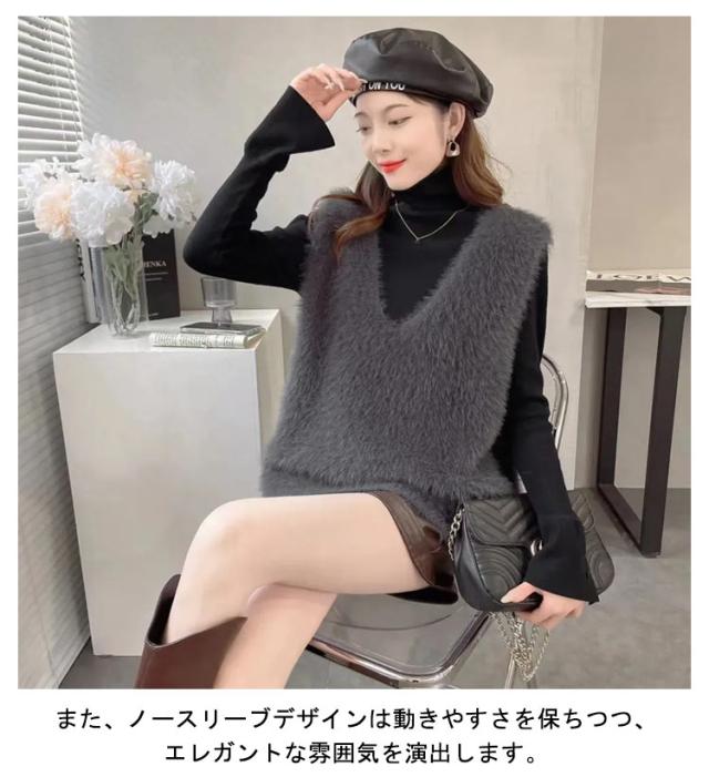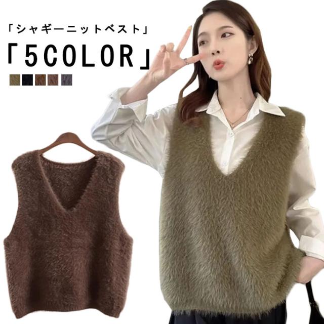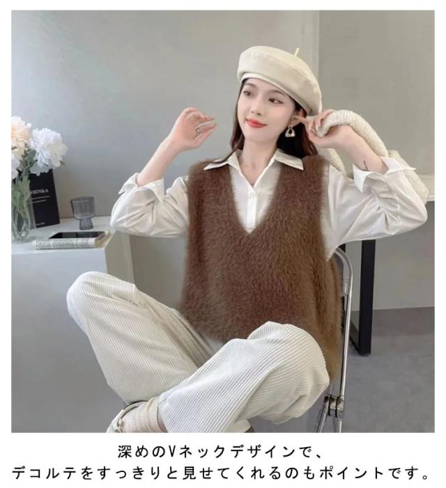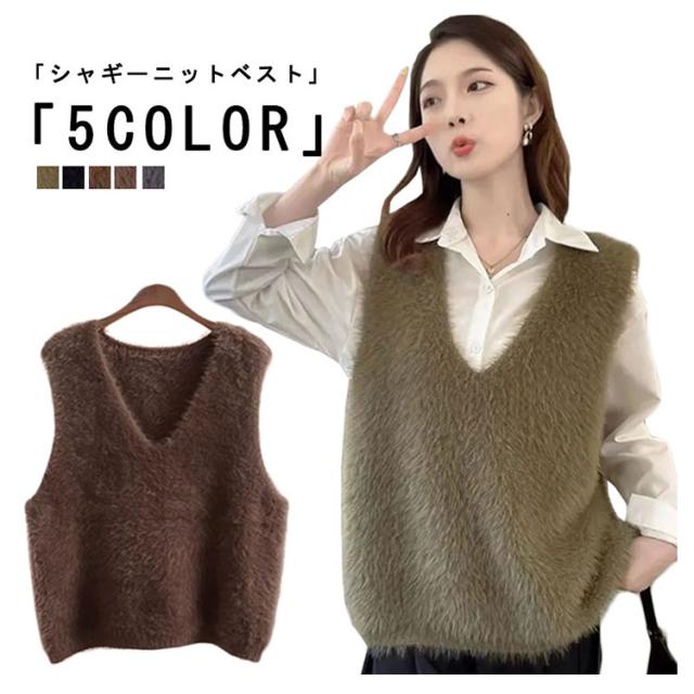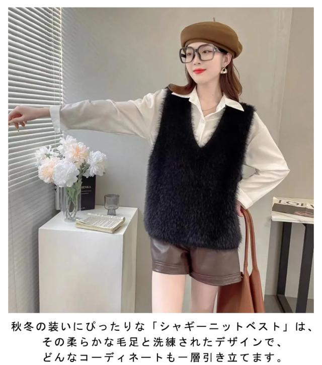 Vネック ニットベスト ふわふわ レイヤード セーター シャギーベスト トップス シャギーニットベスト もこもこ 毛足長め シャギーニットベスト レディース ノースリーブ プルオーバー 体型カバー シンプル カジュアル お洒落 キレイめ