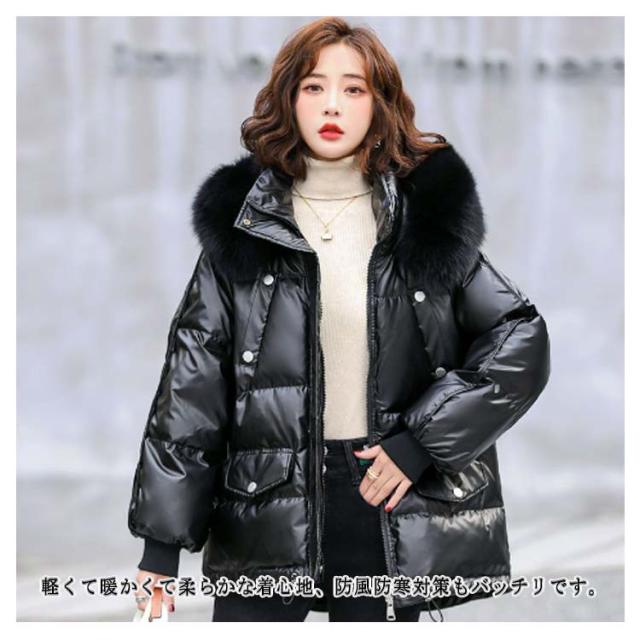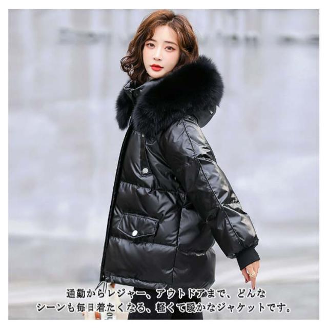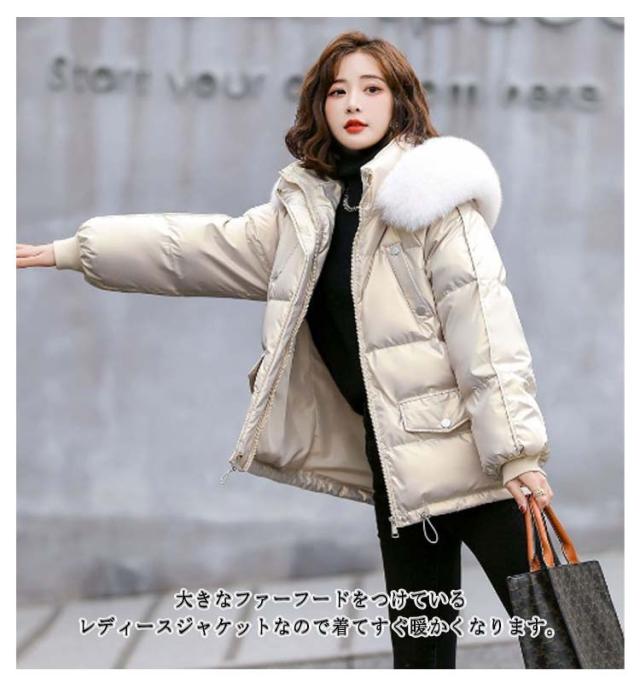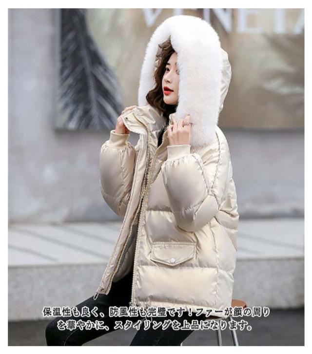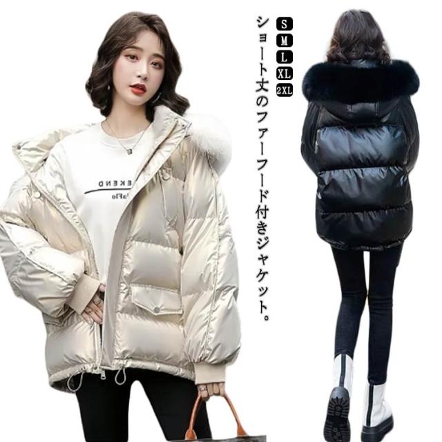アウター ファーフード ショートダウン ミディアム丈 冬アウター レディース ダウンジャケット コート シンプル フェイクダイン 中綿コート 大きいサイズ 無地 防寒 ファーフード 秋 冬 高級感