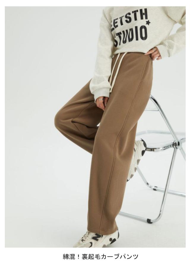 | 綿混!裏起毛カーブパンツ カーブシルエットで美脚効果はもちろん、穿くだけでトレンド感をプラスできるのが嬉しいポイント。 裏地はふわふわのシャギーで暖かさをキープします。 冬〜春口までロングシーズン着回しできます。 | |
