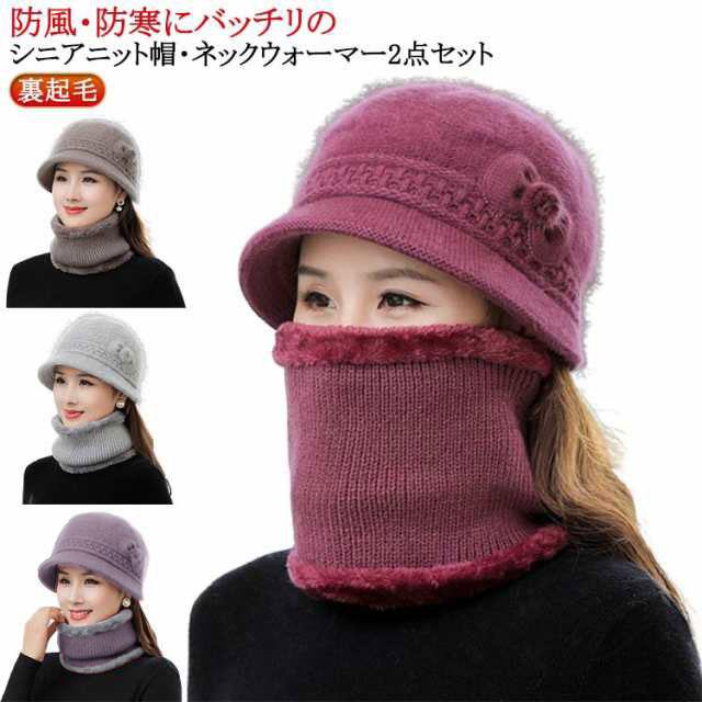 シニア 2点セット 防寒 ネックウォーマー ニットキャップ ニット帽 帽子 ミセス 帽子 婦人帽 ハット 裏起毛 裏ボア 厚手 暖かい 秋冬 おばあちゃん 送料無料 上品 暖かい ぽかぽか ぬくぬく