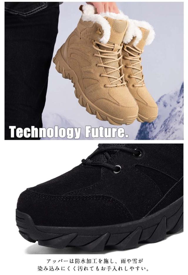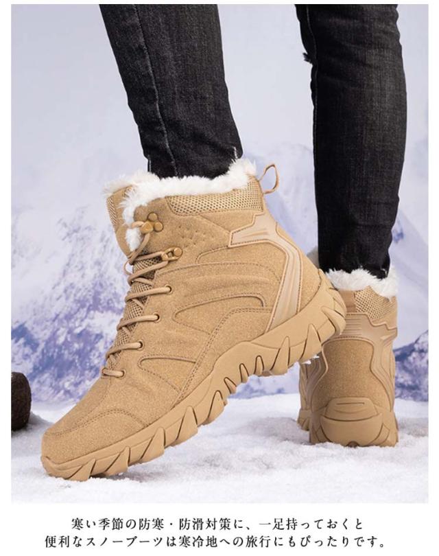 ボアブーツ 暖かい ハイカット メンズ スノーブーツ 滑らない ウインターブーツ 防寒 防水 防滑 レースアップ スノーシューズ 軽量 防寒靴 アウトドア 雪靴 厚底 ブーツ スノーブーツ 登山 トレッキングシューズ 大きいサイズ ワークブーツ 黒 ベージュ